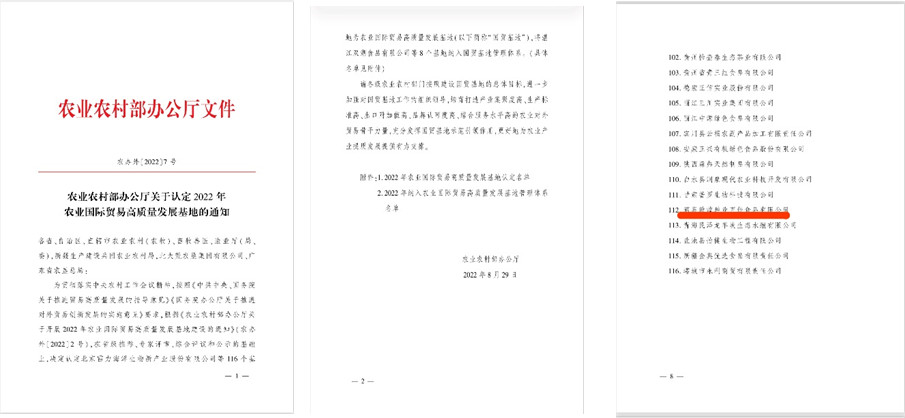 酒泉敦煌種業(yè)百佳食品有限公司被農(nóng)業(yè)農(nóng)村部認定為2022年農(nóng)業(yè)國際貿(mào)易高質(zhì)量發(fā)展基地